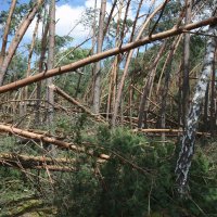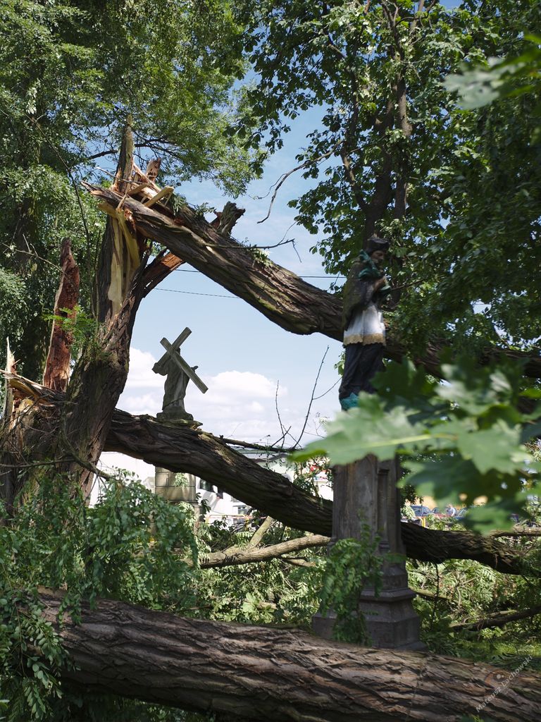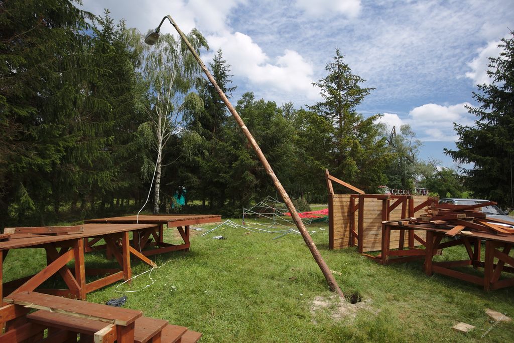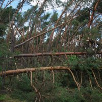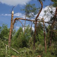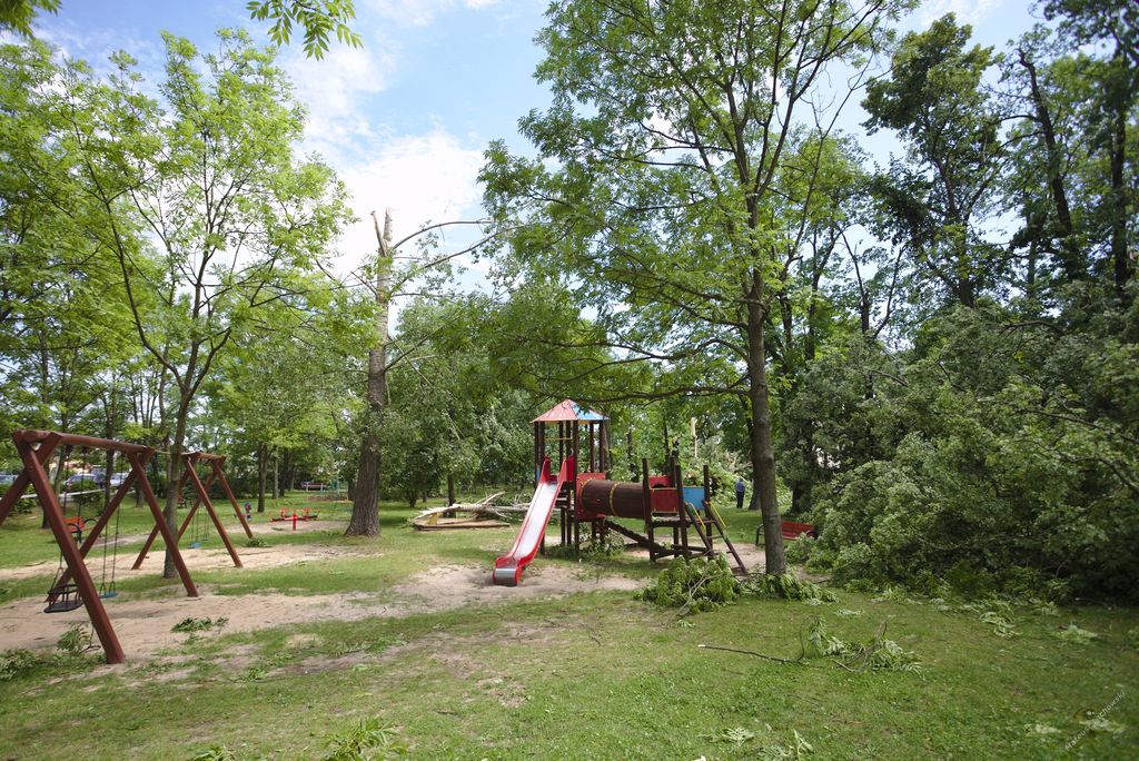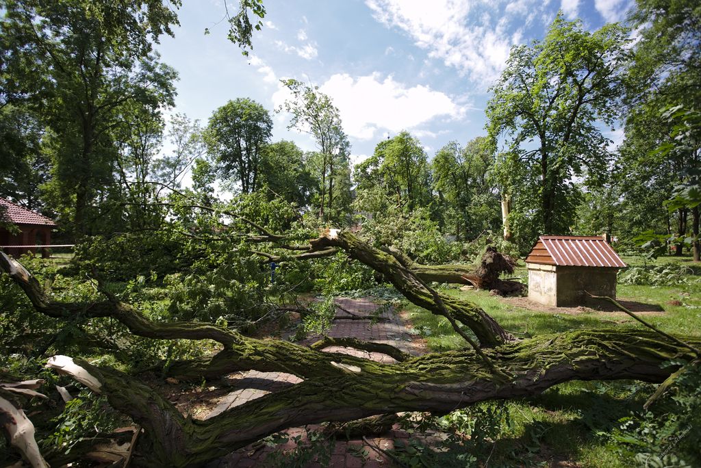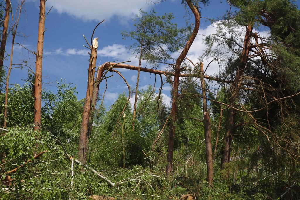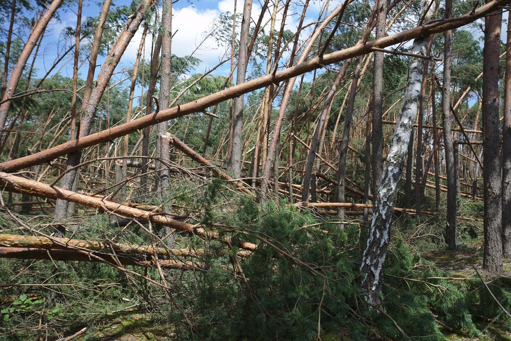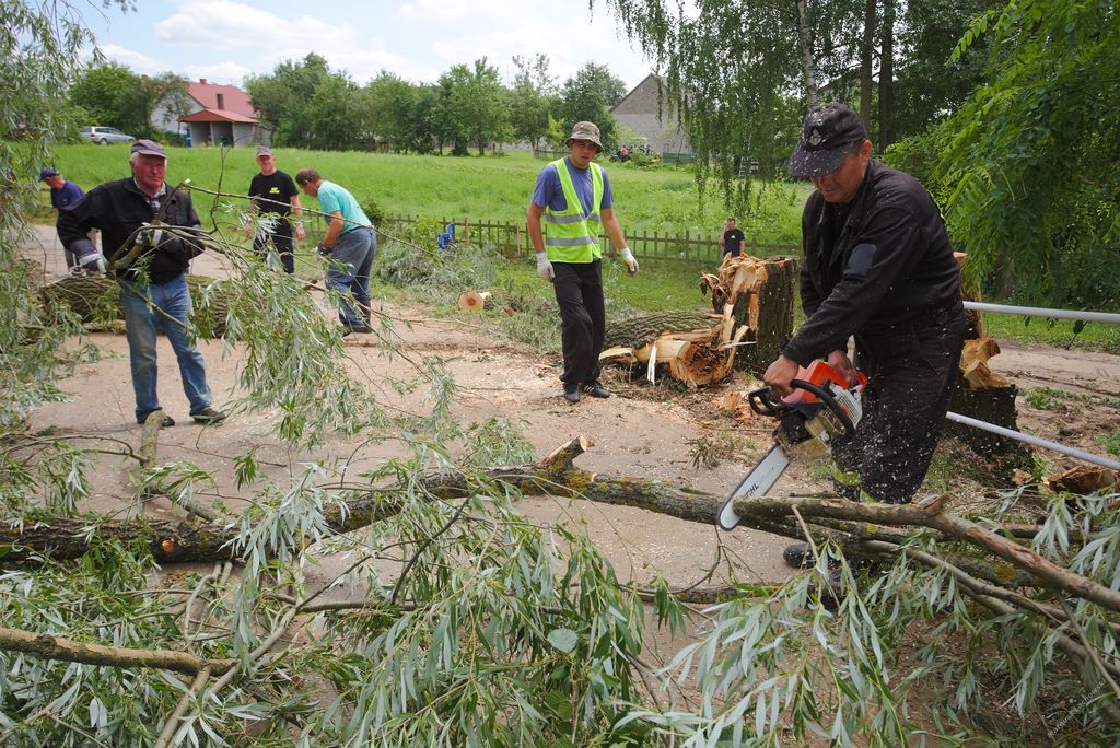 Skutkiem burzy są setki połamanych i wyrwanych z korzeniami drzew, pozrywane dachy oraz uszkodzone domy i budynki gospodarcze.