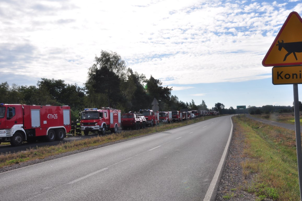 W działaniach udział wzięły siły i środki PSP z KP PSP w Opocznie, Kompanii Gaśniczej „RADOMSKO” wchodzącej w skład WOO ŁBO oraz Ochotniczych Straży Pożarnych w KSRG z powiatu opoczyńskiego. Z jednostkami Krajowego Systemu Ratowniczo-Gaśniczego współdziałały siły i środki policji, służb leśnych, w tym samolot gaśniczy Dromader, służby PKP oraz zespoły ratownictwa medycznego.