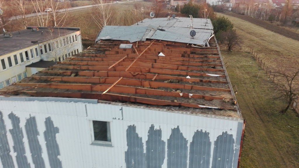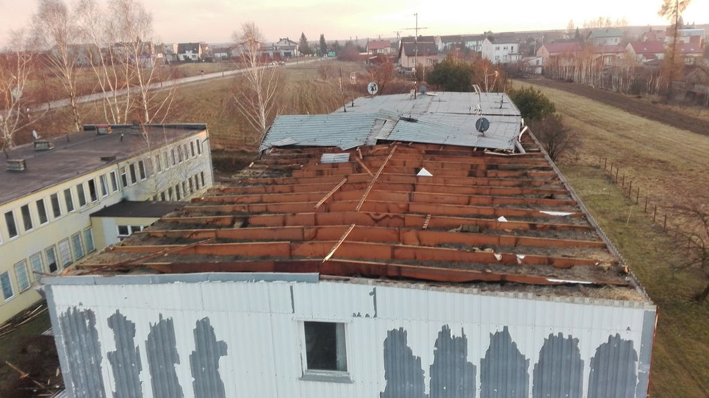 Silny wiatr spowodował straty materialne w wysokości około 125 tys. zł, uratowano mienie w wysokości 1 mln zł. Uszkodzeniu uległo ok. 300m2 powierzchni dachu oraz karoseria samochodu osobowego marki Audi A4, który został przygnieciony przez elementy uszkodzonego dachu. Nikt na szczęście nie ucierpiał w tym zdarzeniu.