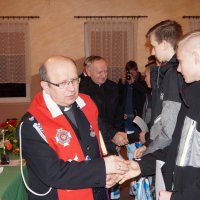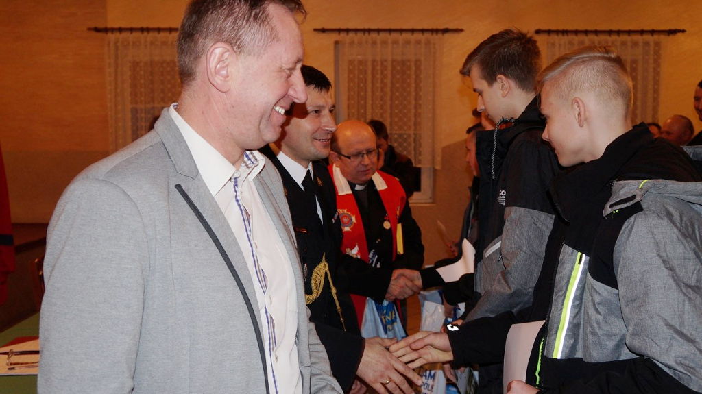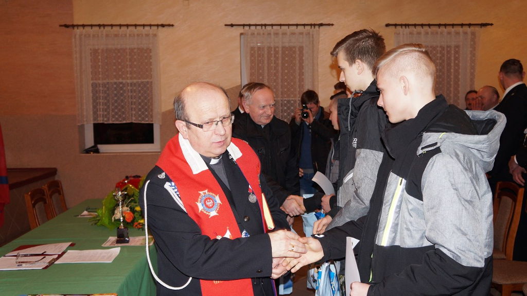 W ubiegłorocznych I Halowych Powiatowych Zawodach Sportowo-Pożarniczych MDP chłopcy z Młodzieżowej Drużyny Pożarniczej w Wójcinie zajęli również wysokie II miejsce, co było okazją do pogratulowania młodzieży. Listy gratulacyjne i drobne upominki dla wójcińskiej strażackiej młodzieży wręczyli zaproszeni goście poseł RP Robert Telus, Zastępca Komendanta Powiatowego PSP w Opocznie - bryg. Józef Pacan, Wojciech Rudalski – Wójt Gminy Paradyż, ks. dziekan Adam Myszkowski - kapelan gminny strażaków oraz ks. Wacław Sztandera – proboszcz parafii w Wójcinie.