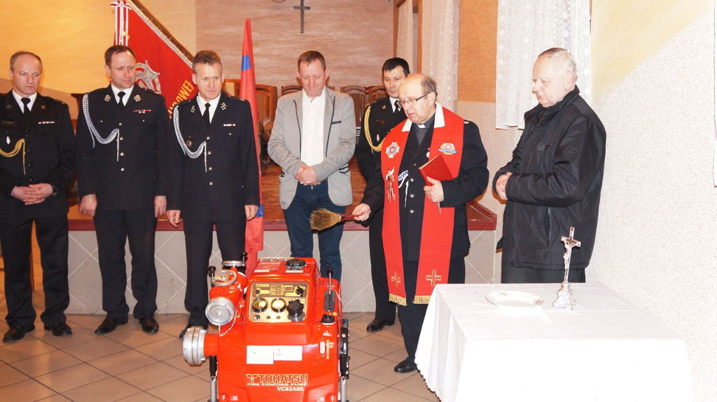 Punktem kulminacyjnym spotkania było uroczyste poświęcenie zakupionej nowej motopompy, którego dokonali obecni księża.