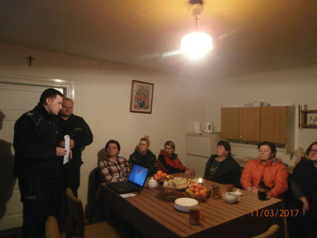 Policjanci podczas spotkań szczególną uwagę zwrócili na zagrożenia związane z różnego rodzaju przestępstwami na szkodę osób starszych. Podawali szereg przykładów sytuacji, w jakich może dojść do straty mienia, czasami znacznej wartości. Dokładnie omówili metody działania oszustów, którzy wykorzystując ludzkie emocje, zaufanie, łatwowierność doprowadzają do kradzieży czy oszustw na przysłowiowego "wnuczka". Oczywiście metody przestępczej działalności zmieniają się. Oszuści podszywają się pod pracowników wszelkich instytucji tylko po to, by wzbudzić zaufanie swoich ofiar, uśpić czujność, a w konsekwencji okraść.