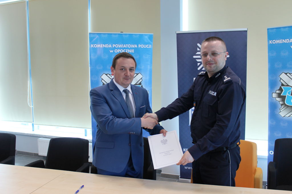 19 maja 2017roku,Komendant Powiatowy Policji w Opocznie mł.insp. Konrad Kobierski w obecności kadry keirowniczej opoczyńskiej komendy, podpisał porozumienia w ramach, których w okresie wakacyjnych weekendów na terenie gmin Opoczno, Drzewica, Sławno i Poświętne zwiększona zostanie ilość prewencyjnych patroli policyjnych poprzez uruchomienie systemu służb ponadnormatywnych. Każda z gmin na ten cel przekazała środki pieniężne.