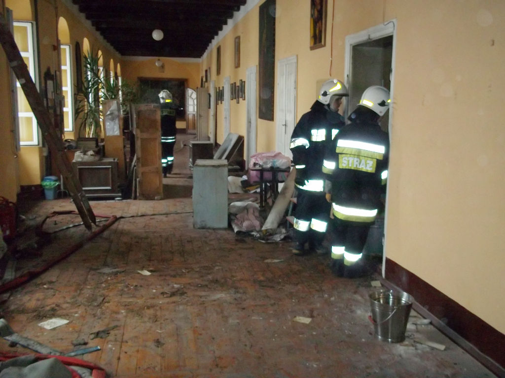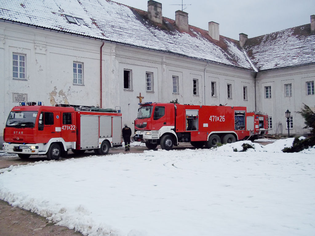- W Poświętnem w godzinach porannych, doszło do pożaru na poddaszu części mieszkalnej zabytkowego Klasztoru w Studzianie. Księża sami podjęli wstępną próbę ugaszenia pożaru przy pomocy posiadanych gaśnic, ale nie udało się tego pożaru ugasić. Te działania gaśnicze we wstępnej fazie rozwoju pożaru na pewno przyczyniły się do ograniczenia rozwoju i szybkości pożaru, który nie objął jeszcze konstrukcji dachowej. W chwili przyjazdu na miejsce czterech zastępów PSP i pięciu OSP paliło się pomieszczenie biblioteki na pierwszym piętrze rozprzestrzeniając się na poddasze budynku. Mimo bardzo dużego zadymienia, strażacy szybko podali gaśnicze prądy wody do pomieszczenia biblioteki oraz na strych budynku, co pozwoliło po około 20 minutach akcji zlokalizować pożar i ograniczyć jego rozprzestrzenianie. Następnie strażacy dokonali wyniesienia zbiorów archiwalnych i książek z pomieszczenia biblioteki. W wyniku pożaru spaleniu uległa część stropu nad pomieszczeniem biblioteki, część zbiorów archiwalnych (książki, obrazy), płaskorzeźby Drogi Krzyżowej, wyposażenie pomieszczenia. Przypuszczalną przyczyną pożaru była nieszczelność przewodu kominowego. Straty materialne oszacowano wstępnie na ok. 100 tys. zł, natomiast uratowane mienie na 3 mln zł.