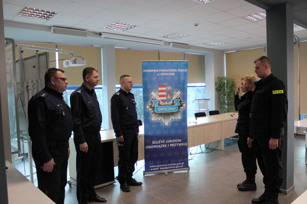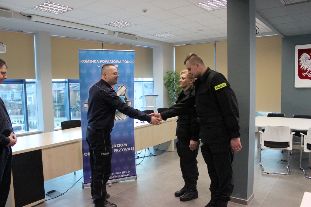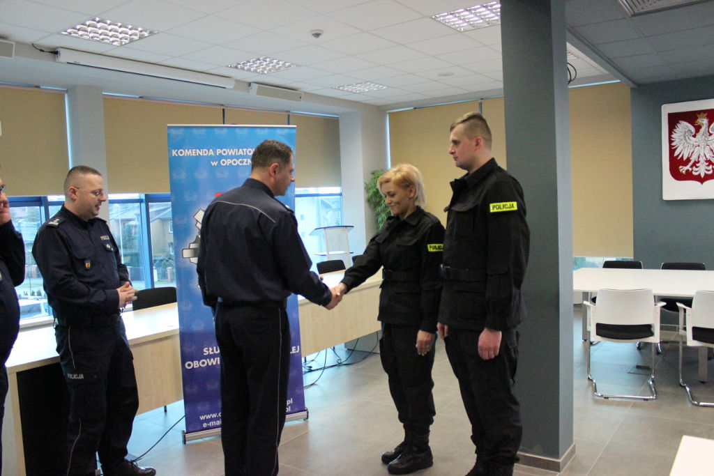 Komendant Powiatowy Policji w Opocznie pogratulował nowym policjatom oraz podkreślił jak trudna i odpowiedzialna jest służba w Policji. Życzył funkcjonariuszom wytrwałości podczas szkolenia.