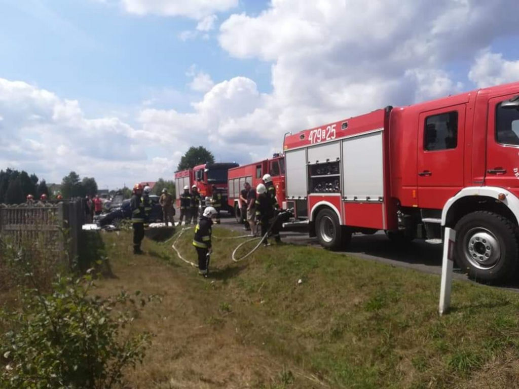 - Zastęp PSP oraz dwa zastępy OSP (Drzewica, Krzczonów) zostały zadysponowane do wypadku samochodu osobowego marki Opel Astra 2, który wypadł z drogi uderzył w bramę posesji i się zapalił w miejscowości Zakościele (gm. Drzewica). Po dotarciu na miejsce zdarzenia pierwszego zastępu zastano pojazd poza jezdnią. Do zadań należało zabezpieczenie miejsca zdarzenia, ugaszenie palącego się samochodu, uprzątnięcie pozostałości po kolizji drogowej.