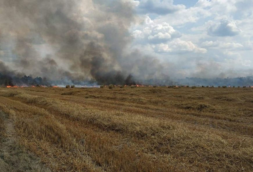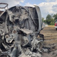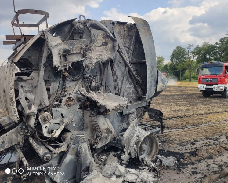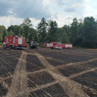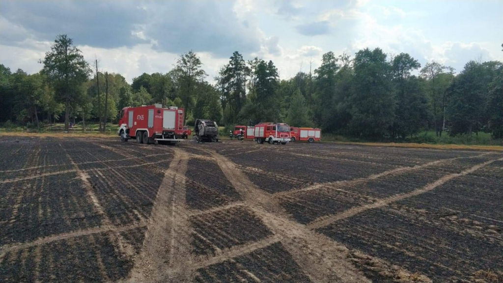 - Tego samego dnia doszło do groźnego pożaru prasy oraz słomy po kombajnie w miejscowości Białaczów. Po dotarciu na miejsce zdarzenia pierwszego zastępu zastano pożar prasy oraz słomy o powierzchni ok. 5 ha. Niestety siły i środki nie były wystarczające aby opanować pożar, dlatego też zadysponowano kolejne zastępy z terenu gminy oraz gmin sąsiednich. W akcji brało udział 17 zastępów straży. Zadaniem strażaków było zabezpieczenie miejsca zdarzenia, podaniu piętnastu prądów wody w natarciu na palącą się prasę oraz słomę. W wyniku pożaru spaliło się 25 ha pola oraz prasa. Straty oszacowano na 120 tys. złotych a uratowano mienie 20 tys. złotych.