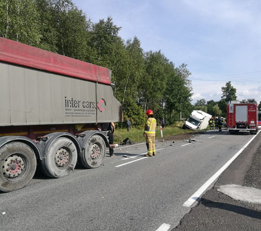 - Dwa zastępy PSP oraz dwa zastępy OSP (Paradyż, Żarnów) zostały zadysponowane do wypadku drogowego z udziałem 3 samochodów w Budkowie gm. Żarnów na DK 74. Po dotarciu pierwszego zastępu na miejsce zdarzenia zastano samochód Fiat Doblo oraz samochód ciężarowy Renault Magnum na jezdni, natomiast trzecie auto dostawcze Iveco znajdowało się w przydrożnym rowie. Jedna osoba została poszkodowana. Zadaniem strażaków było zabezpieczenie miejsca zdarzenia, udzielenia kwalifikowanej pierwszej pomocy osobie poszkodowanej do czasu przybycia ZRM, usunięciu płynów eksploatacyjnych oraz uprzątnięcie jezdni z pozostałości po zdarzeniu drogowym.
