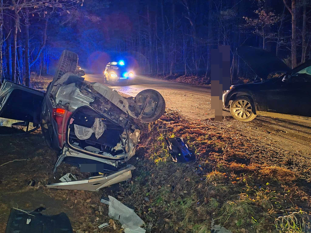 18 grudnia 2023 roku, o godzinie 20.30, policjanci zostali skierowani do zdarzenia drogowego w Wąglanach. Na miejscu mundurowi zastali wywrócony na dach samochód osobowy citroen oraz rozbite bmw.