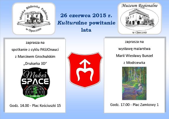 Miejska Biblioteka Publiczna oraz Muzeum Regionalne serdecznie zapraszają 26 czerwca 2015 r. na Kulturalne powitanie lata.