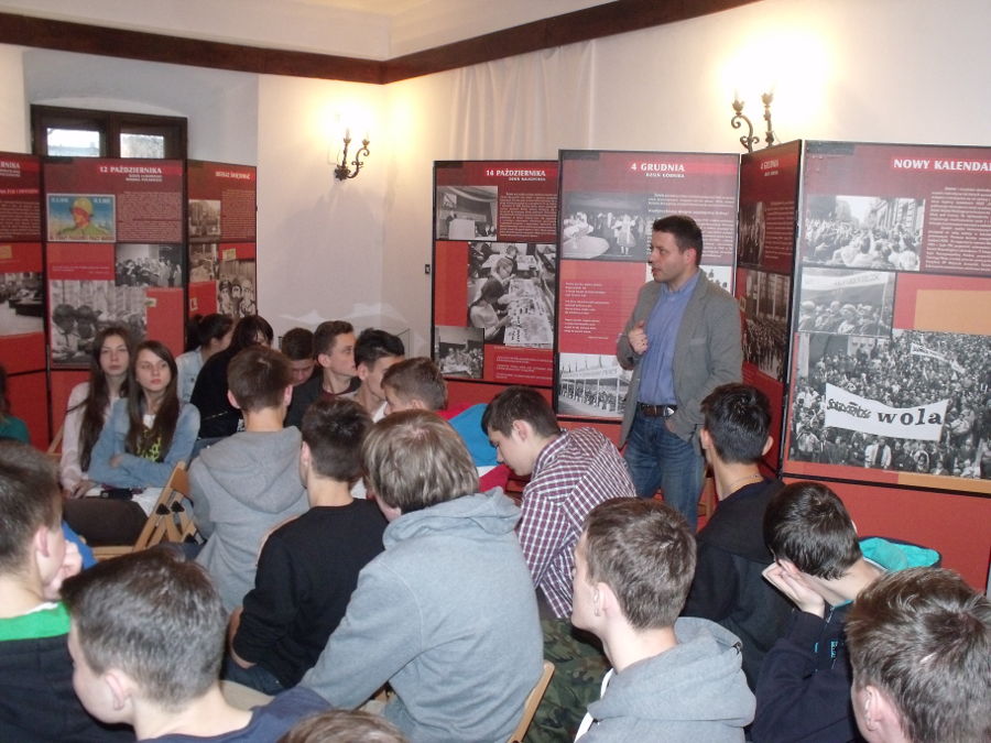 Oprowadził licznie zebraną młodzież po ekspozycji, podkreślając najważniejsze obchody świąt w Polsce