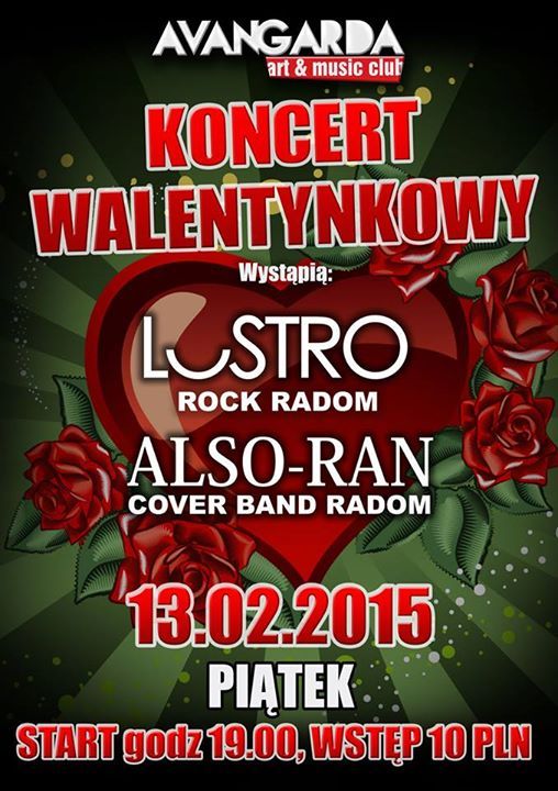 Art&Music Club Avangarda zaprasza na koncert walentynkowy, który odbędzie się w piątek, trzynastego lutego. Na scenie klubu wystąpią: Lustro oraz Also-Ran.