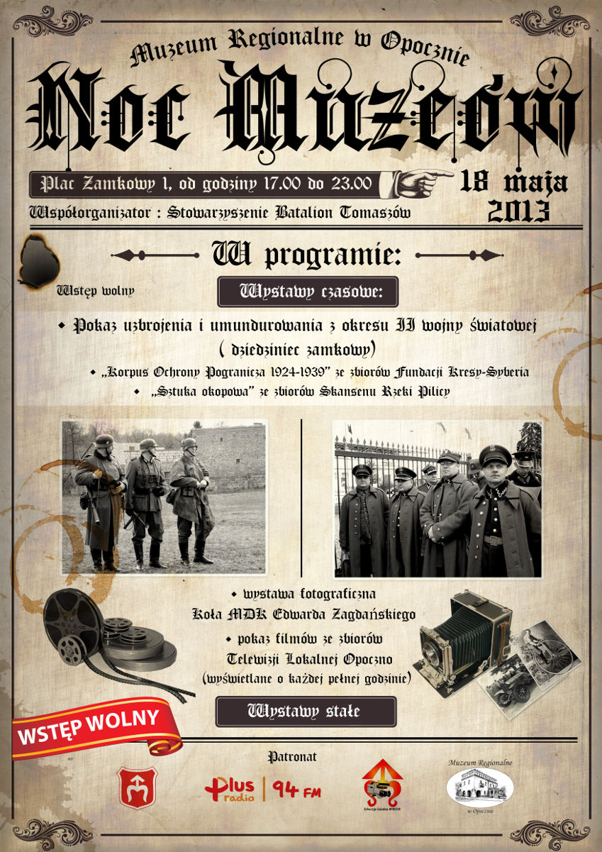 Muzeum Regionalne w Opocznie zaprasza na Noc Muzeów, która odbędzie się 18 maja 2013 roku. Podczas imprezy będzie można obejrzeć wystawy czasowe, a wśród nich: