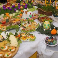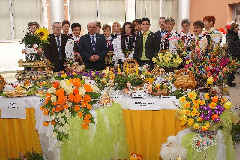 Tegoroczna „Baba…” zmieniła delikatnie swoją formułę. Na patio MDK pojawił się duży, reprezentacyjny stół wielkanocny, na którym można było obejrzeć wszelkie możliwe ozdoby świąteczne i skosztować przeróżnych tradycyjnych smakołyków. Stół przygotowały gospodynie ze Stużna i trzeba przyznać, że wykazały się przy tym nie lada pomysłowością, inspirując inne panie domu. Na pozostałych stołach Koło Gospodyń Wiejskich z Dzielnej częstowało pysznym ciastem, KGW z Wygnanowa potrawami z jaj, a panie z Modrzewia barszczem białym z kiełbasą. Stowarzyszenie Rozwoju Opoczyńskiej Wsi prezentowało wspaniałe baby i palmy wielkanocne, opowiadając przy tym o tradycjach wielkanocnych w naszym regionie. Podczas imprezy odbywały się również warsztaty twórczości ludowej, w czasie których każdy chętny, pod okiem doświadczonych twórczyń, mógł wykonać pisanki, palmy i kwiaty świąteczne.