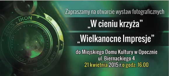 21 kwietnia o godz. 16.00 zapraszamy na otwarcie wystawy fotograficznej „W cieniu krzyża” oraz podsumowanie konkursu fotograficznego i otwarcie wystawy „Wielkanocne Impresje”.