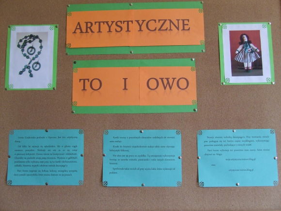 Aktualnie serdecznie zapraszamy do zwiedzania wystawy „Artystyczne to i owo”. Jest to wystawa przedstawiająca twórczość pani Iwony Czajkowskiej. Pani Iwona pochodzi z Opoczna. Jest tzw. artystyczną duszą. Od kilku lat zajmuje się rękodziełem. Ma w głowie ciągle mnóstwo pomysłów. Niekiedy nie wie za co się wziąć w pierwszej kolejności. Zawsze stawia na kreatywność i dokładność. Chciałaby się podzielić swoją pasją tworzenia. Wystawa w gablotach przedstawia tylko wybraną część prac, są tu: kartki okolicznościowe, zakładki, biżuteria, tryptyki zdobione metodą decoupage’u.