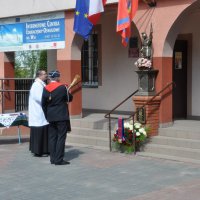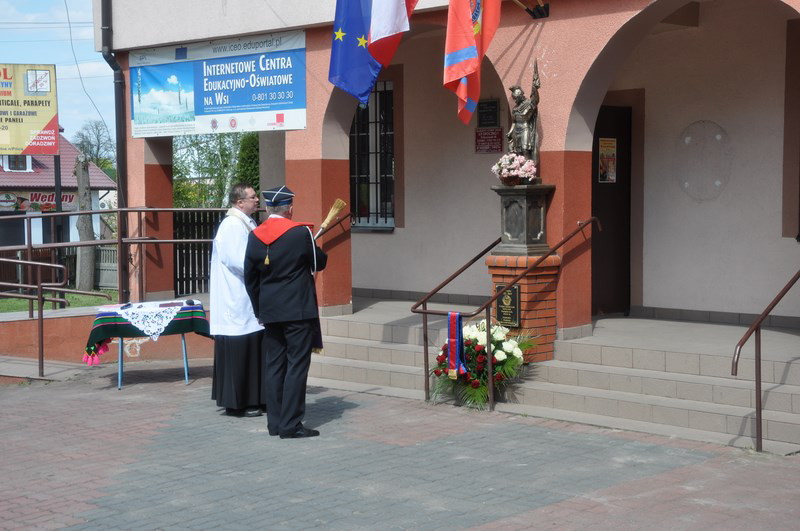 Pierwszym punktem uroczystości było odsłonięcie i poświęcenie Figury Św. Floriana przed strażnicą OSP w Poświętnem, którą odsłonili dh Marian Zach w asyście Prezesa dh Jerzego Łumińskiego i Pana Michała Franasa Wójta Gminy Poświętne. Poświecenia Figury Św. Floriana dokonali ksiądz Leszek Sokół – kapelan strażaków powiatu opoczyńskiego oraz proboszcz miejscowej parafii ks. Jerzy Cedrowski.