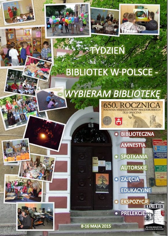 W tych dniach zapraszamy również do udziału w imprezach organizowanych przez naszą bibliotekę w ramach obchodów Tygodnia Bibliotek w Polsce oraz 650. rocznicy nadania miejskich praw magdeburskich dla Opoczna. Wśród licznych atrakcji zaplanowaliśmy: między innymi: