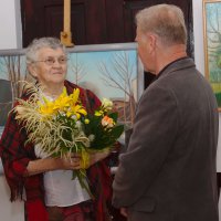 Artystka, słowem wstępu, opowiedziała o swoim związku ze sztuką, o swojej drodze twórczej, uczniach, licznych wystawach, plenerach.