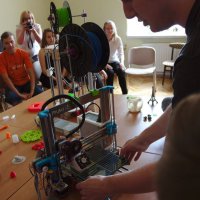 Przybyli na zajęcia dowiedzieli się jak działa i jak zbudowana jest drukarka 3D. Uczestnicy mogli obserwować proces wydruku różnych elementów oraz zaprojektować własny breloczek do kluczy, który później zmaterializowali.