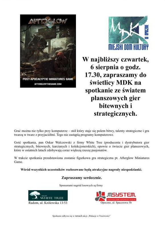 W najbliższy czwartek, 6 sierpnia o godz. 17.30, zapraszamy do świetlicy MDK na spotkanie ze światem planszowych gier bitewnych i strategicznych.