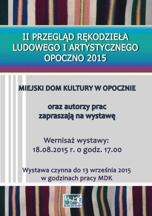 Miejski Dom Kultury w Opocznie oraz autorzy prac zapraszają na wystawę II Przeglądu Rękodzieła Ludowego i Artystycznego.