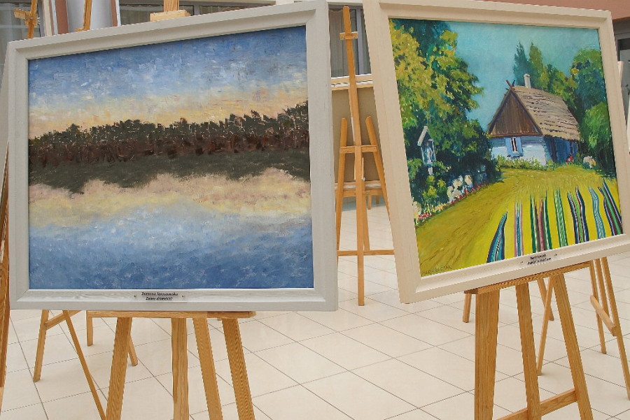 W plenerze wzięło udział 71 artystów, którzy stworzyli prace prezentujące zabytki kultury i przyrody powiatu opoczyńskiego. A że warto do nas przyjść i zobaczyć to, co „zmalowali” potwierdza Aleksandra Talaga-Nowacka: Opoczyńskie to region o silnej tradycji ludowej, co nie uszło uwagi artystów. Lokalne wzory, a szczególnie pasiaki, wykorzystane zostały w wielu pracach – często w niebanalny sposób, jako element pejzażu. Na przykład w wielobarwne pasy układają się smugi światła na niebie (Ewa Jeziorska-Karwowska), przestrzeń przed żółtą halą w Paradyżu (Jarosław Zaczek), albo wiejska droga (Danuta Krajewska-Pietrasik, Maria Łuczak), z pasów złożony jest widok pól z lotu ptaka (Katarzyna Jagodzińska). Wiesława Przybyło-Cieślik (…) zaprezentowała ciekawy, inspirowany nie tylko pasiakami, ale i koronką, obraz abstrakcyjny. Obrazy powstały w różnych stylach – od wszelkich odmian realizmu po abstrakcję. Karolina Dzięcioł z wdziękiem naśladuje styl Marka Chagalla, malując znanego z Opoczna pegaza unoszącego się ponad sielską okolicą ze zgeometryzowanymi domkami. Agnieszka Markiewicz „rozmywa” krajobraz z żaglówką na wodzie niemal niczym William Turner. Bardzo interesujący, subtelny obraz Anny Lehmann to dzieło na pograniczu realizmu i abstrakcji. Podobnie „Niebo i ziemia” Leszka Misiaka, gdzie prostokąty pól i nieba układają się w geometryczną kompozycję. Ewa Borowska-Kurpeta na swoim uroczym obrazie umieszcza stylizowany, prawie że secesyjny oset na abstrakcyjnym tle z niebieskich smug. Elżbieta Kusińska preferuje styl dziecięcy (może odrobinę inspirowany dziełami Witolda Wojtkiewicza czy Tadeusza Makowskiego) z figurkami zakochanej pary: kury i koguta.