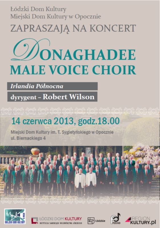 Miejski Dom Kultury w Opocznie zaprasza na koncert chóru męskiego z Irlandii Północnej, który odbędzie się 14 czerwca (dzisiaj) 2013 r., o godzinie 18:00.