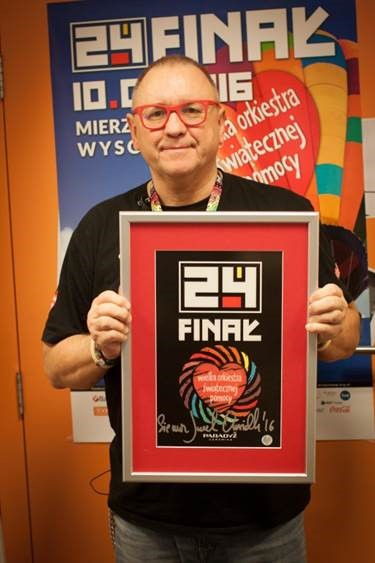 Jerzy Owsiak z pamiątkową płytką od Ceramiki Paradyż
