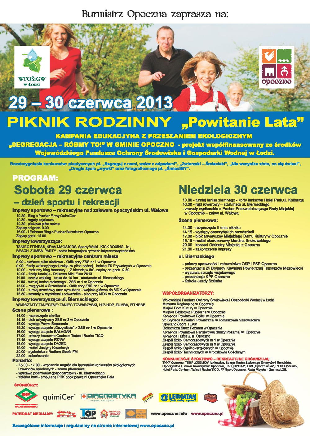 W najbliższy weekend, t.j. 29 i 30 czerwca 2013 roku zapraszamy na Piknik Rodzinny "Powitanie Lata".