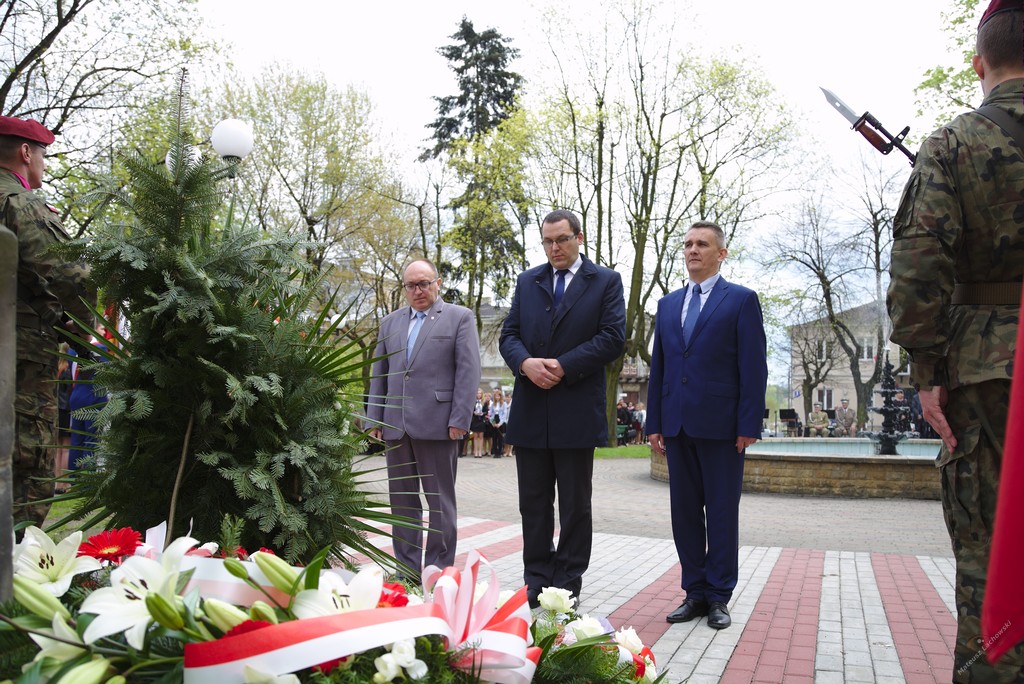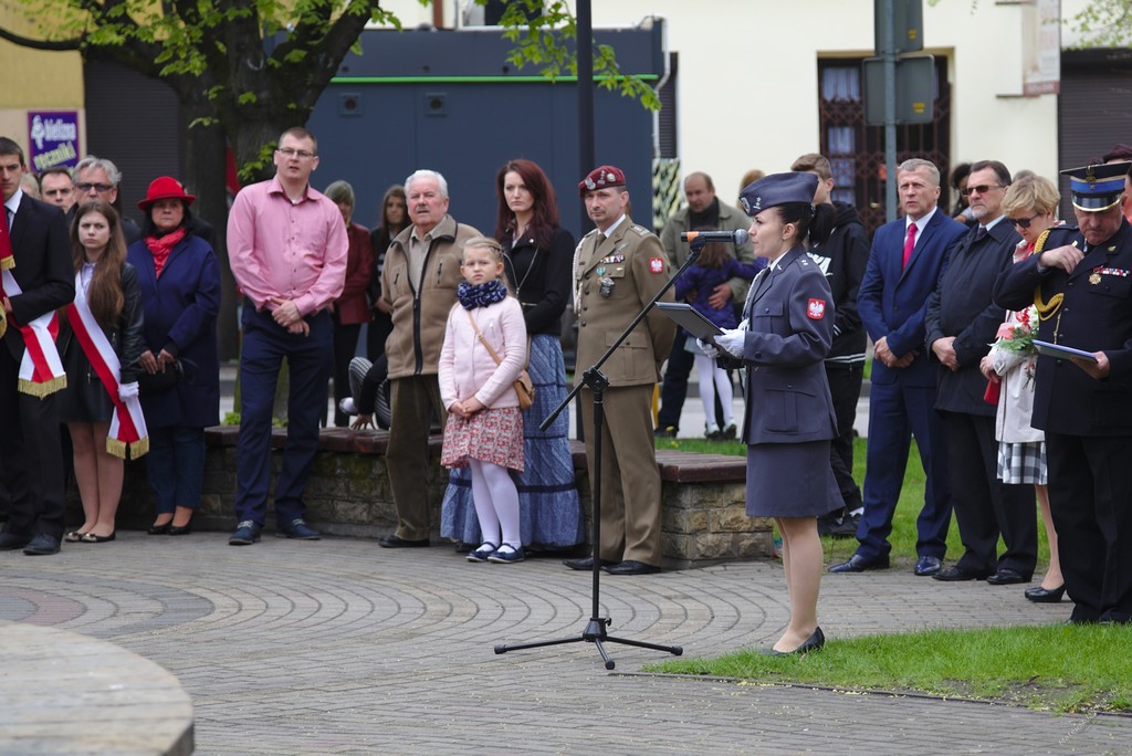 Pod pomnikiem Tadeusza Kościuszki okolicznościowe przemówienie wygłosiła Przewodnicząca Rady Powiatu Opoczyńskiego Maria Barbara Chomicz, która podkreśliła znaczenie uchwalonej przed 225 laty drugiej na świecie i pierwszej w Europie Ustawy Zasadniczej.