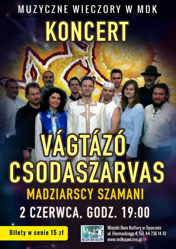 Miejski Dom Kultury w Opocznie zaprasza 2 czerwca na koncert grupy VÁGTÁZÓ CSODASZARVAS - Madziarscy szamani, który odbędzie się w ramach Muzycznych Wieczorów w MDK.