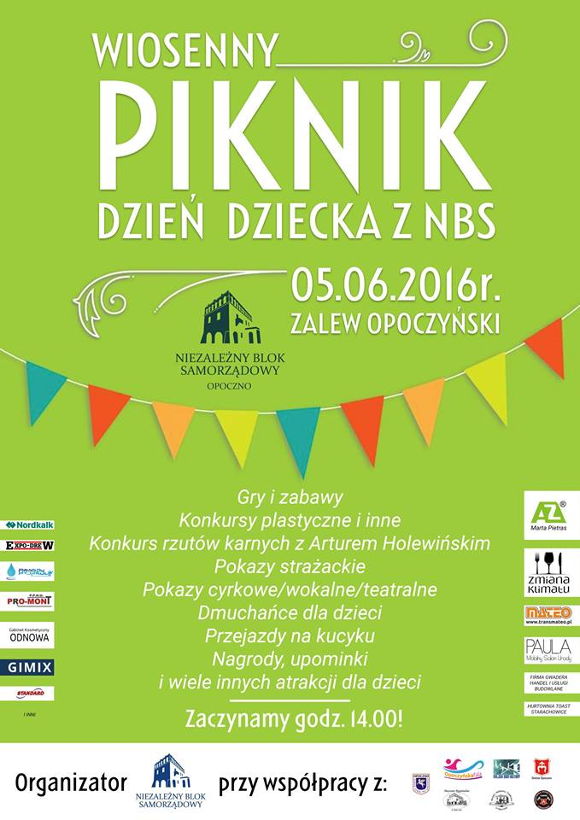5 czerwca 2016 (niedziela) o godz. 14:00 Niezależny Blok Samorządowy zaprasza na Wiosenny Piknik "Dzień Dziecka ze Stowarzyszeniem NBS".