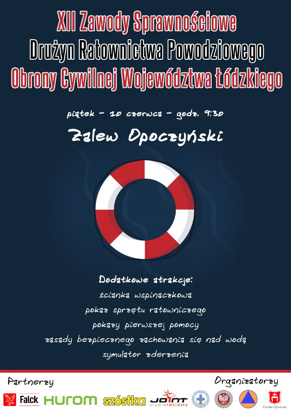 10 czerwca 2016 (piątek) o godz. 9:30 na XII Zawody Sprawnościowe Drużyn Ratownictwa Powodziowego Obrony Cywilnej Województwa Łódzkiego zapraszają Wojewoda Łódzki Zbigniew Rau oraz Burmistrz Opoczna Rafał Kądziela.