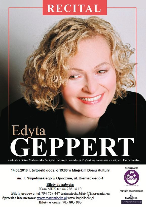 Za tydzień, 14 czerwca 2016 roku w Miejskim Domu Kultury w Opocznie odbędzie się recital Edyty Geppert, podczas którego będzie można usłyszeć ponadczasowe utwory takie jak "Kocham cię życie", "Nie żałuję".