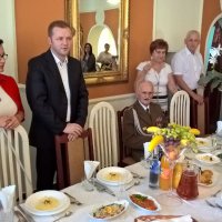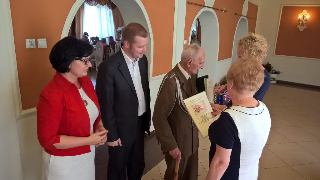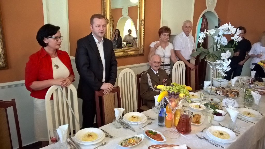 Szanowny jubilat zorganizował przyjęcie, na które prócz kilkudziesięciu członków rodziny przybyli m.in.: Zastępca Burmistrza Anna Zięba, Sekretarz Miasta Tomasz Łuczkowski, Zastępca Kierownika USC Barbara Zięba, Kierownik OPS Jadwiga Oleksik, dyrektor Muzeum Regionalnego Adam Grabowski, dyrektor Miejskiego Domu Kultury Zdzisław Miękus, Kierownik Inspektoratu ZUS Barbara Stańczyk-Kempińska, przedstawiciele Wojskowej Komendy Uzupełnień oraz opoczyńscy kombatanci.