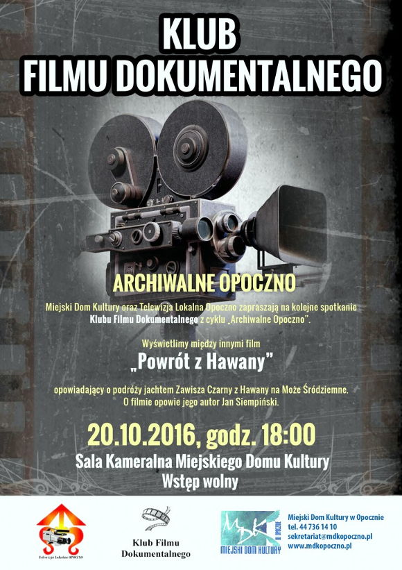 Miejski Dom Kultury w Opocznie wraz z Telewizją Lokalną Opoczno zapraszają na kolejne spotkanie Klubu Filmu Dokumentalnego.