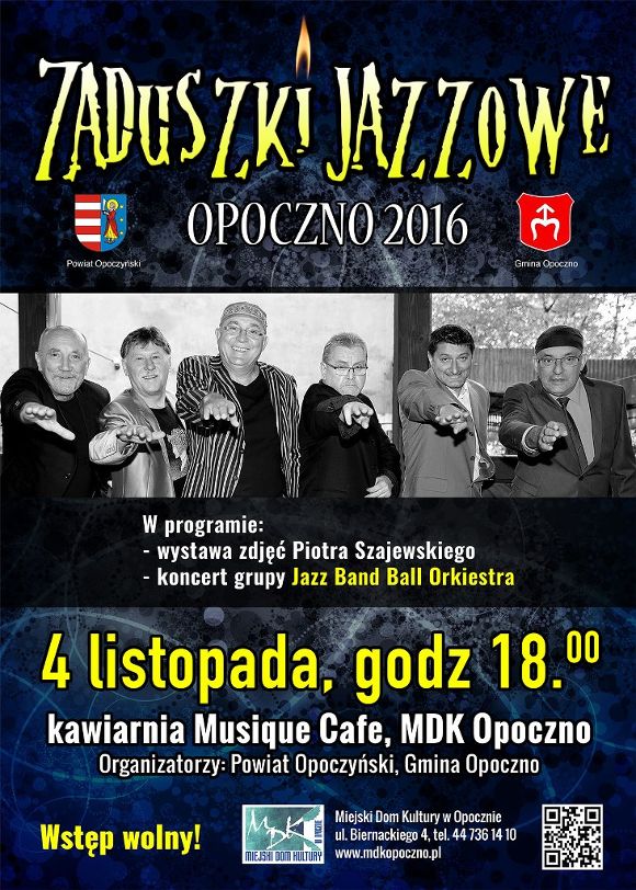 Zapraszamy na Zaduszki Jazzowe Opoczno 2016, które odbędą się 4 listopada o godz. 18:00 w kawiarni Musique Cafe w MDK Opoczno, ul. Biernackiego 4.