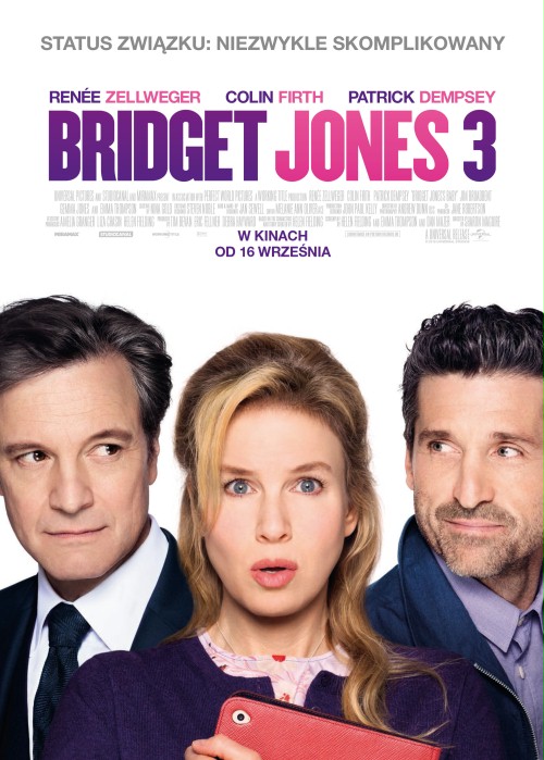 Na trzecią filmową część niekończących się miłosnych zawirowań w życiu Bridget Jones fani na całym świecie czekali lata. Laureaci Oscara – Renée Zellweger i Colin Firth powracają w kontynuacji ikonicznej komedii o miłosnych i zawodowych przygodach Bridget Jones, autorki najzabawniejszego pamiętnika w historii kina i literatury. Od premiery pierwszej filmowej części minęło 14 lat, Bridget to dziś zupełnie inna kobieta. Dobiega pięćdziesiątki, zamiast szelestu kartek w jej pamiętniku usłyszymy raczej odgłos stukania w klawiaturę laptopa. Tak, Bridget Jones idzie z czasem! Ok, może nie radzi sobie z tym doskonale, bo czas ten wpływa także na jej urodę, ale przy dobrym drinku staje się królową facebooków, instagramów, snapchatów i innych mediów społecznościowych.