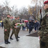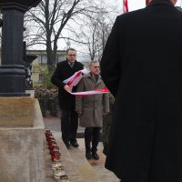 Jednym z punktów uroczystości było symboliczne odsłonięcie i poświęcenie odrestaurowanego Pomnika Nieznanego Żołnierza, o którego historii na początku opowiedział Sekretarz Miasta Tomasz Łuczkowski.