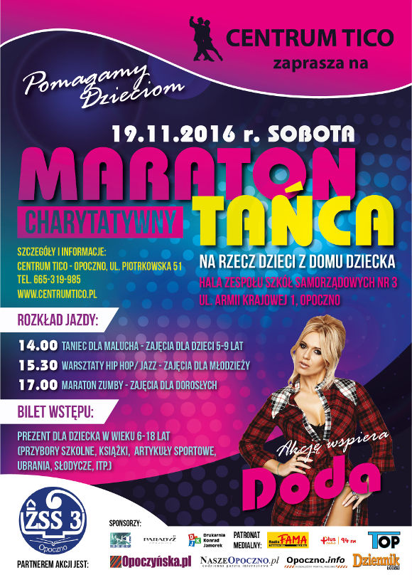 Centrum TICO zaprasza na „Pomagamy Dzieciom – Charytatywny Maraton Tańca na rzecz Domu Dziecka”.
