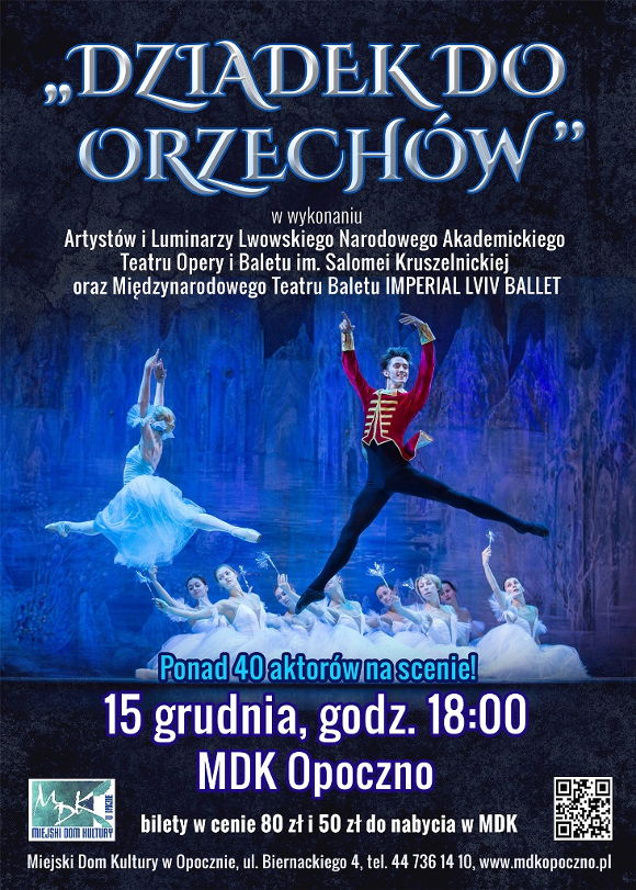 „Dziadek do orzechów” w wykonaniu Artystów i Luminarzy Lwowskiego Narodowego Akademickiego Teatru Opery i Baletu im. Salomei Kruszelnickiej razem z Międzynarodowym Teatrem Baletu „Premier” IMPERIAL LVIV BALLET – 15 grudnia, godz. 18:00, Miejski Dom Kultury w Opocznie.