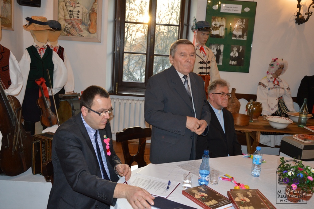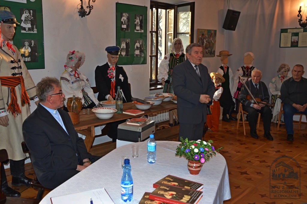 W trakcie spotkania profesor Kupisiński przybliżył gościom genezę swojego zainteresowania opoczyńską kulturą ludową, powiedział także co skłoniło go do podjęcia pracy nad wydaną publikacją. Doktor Jan Łuczkowski mówił między innymi na temat wieloletnich badań etnograficznych, które prowadził w regionie opoczyńskim na przestrzeni wielu lat. Badania zaowocowały pozyskaniem ogromnej liczby bezcennych dziś informacji, zapisem setek tekstów pieśni i przyśpiewek a także dziesiątkami godzin nagrań utworów w wykonaniu autentycznych śpiewaków ludowych, dzięki którym możliwe było odtworzenie zapisu nutowego. To właśnie wyniki tej żmudnej pracy, uzupełnione badaniami i materiałami księdza Zdzisława Kupisińskiego, pozwoliły finalnie na wydanie prezentowanej książki. Doktor Łuczkowski zdradził także wiele niezwykle interesujących szczegółów warsztatowych i ciekawostek, które towarzyszyły zbieraniu materiałów oraz pisaniu książki.