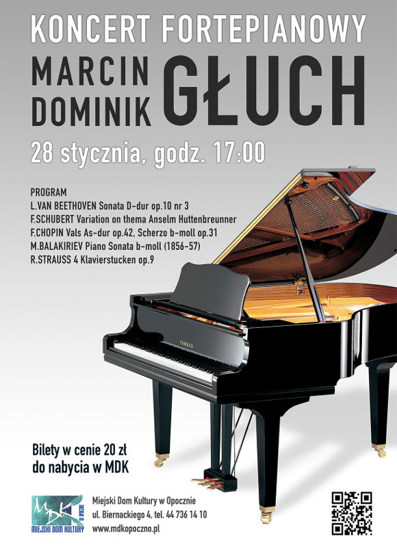 Miejski Dom Kultury w Opocznie serdecznie zaprasza na koncert fortepianowy w wykonaniu Marcina Dominika Głucha.