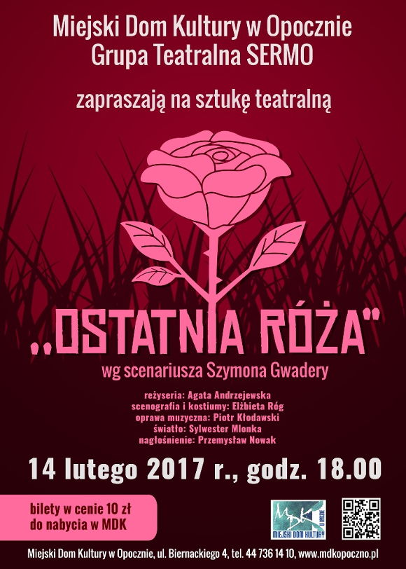 Miejski Dom Kultury w Opocznie zaprasza na walentynkowy spektakl "Ostatnia róża".
