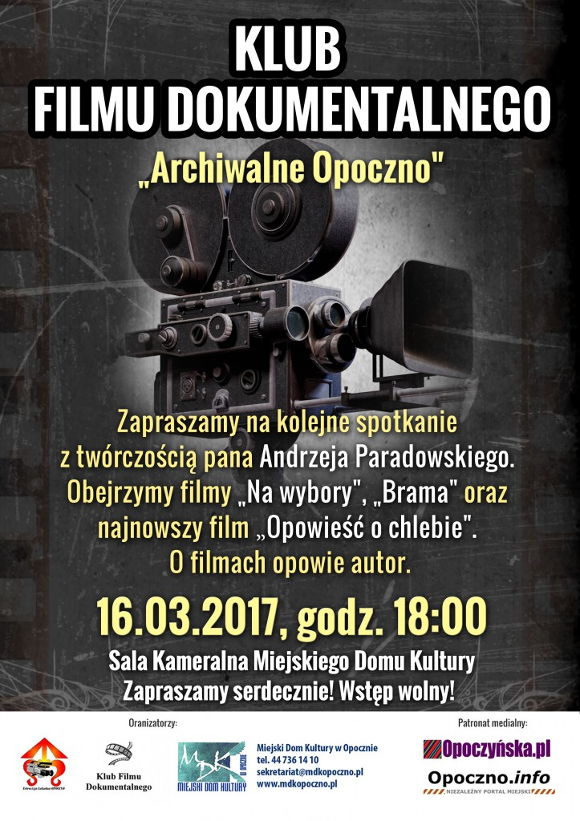 Miejski Dom Kultury w Opocznie zaprasza na kolejne spotkanie Klubu Filmu Dokumentalnego z cyklu „Archiwalne Opoczno”, w którym zaprezentujemy kolejne filmy autorstwa pana Andrzeja Paradowskiego.