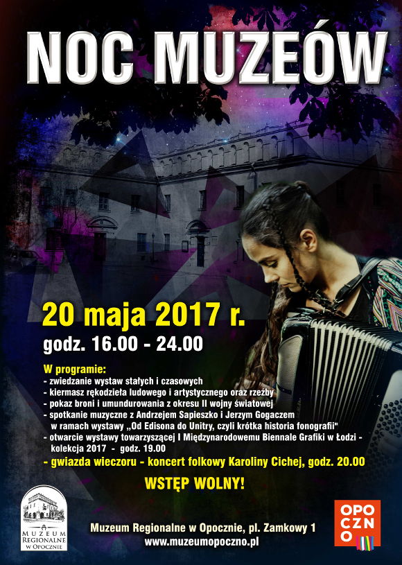 Muzeum Regionalne w Opocznie zaprasza na tegoroczną edycję europejskiej akcji Noc Muzeów. W najbliższą sobotę 20 maja czekać będziemy na zwiedzających od godziny 16:00 aż do północy.