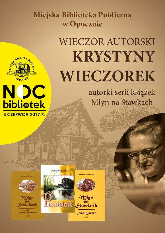 16:30 – spotkanie z Krystyną Wieczorek, autorką serii książek Młyn na Stawkach