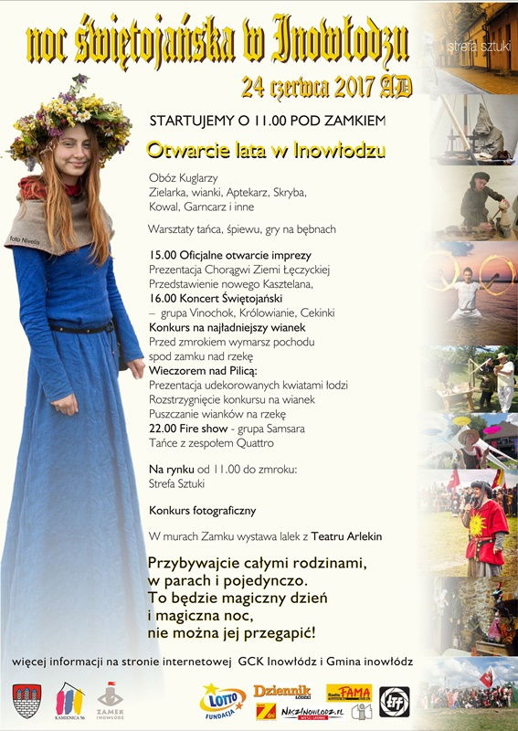 Gmina Inowłódz zaprasza na otwarcie sezonu letniego w scenerii Nocy Świętojańkiej, które odbędzie się 24 czerwca 2017 roku na zamku w Inowłodzu.