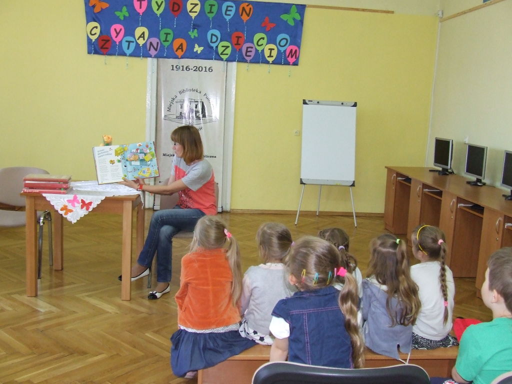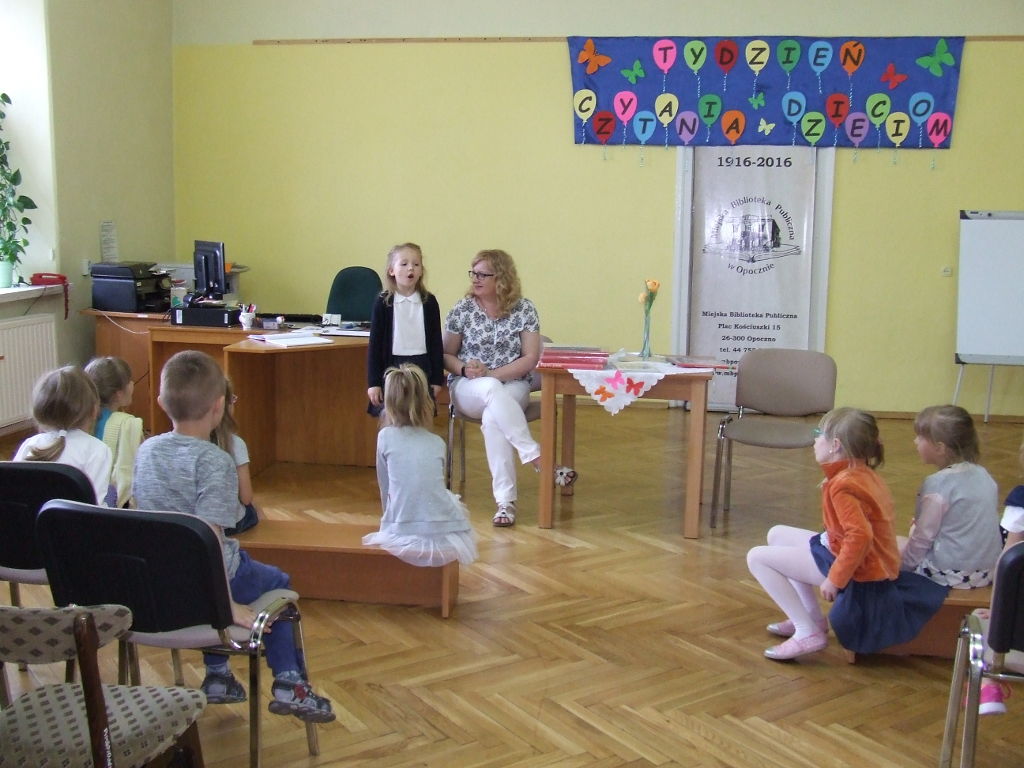 Powoli dobiega końca XVI Ogólnopolski Tydzień Czytania Dzieciom. 8 czerwca spotkaliśmy się w naszej bibliotece z grupą 5-6 latków z Przedszkola nr 4 w Opocznie.